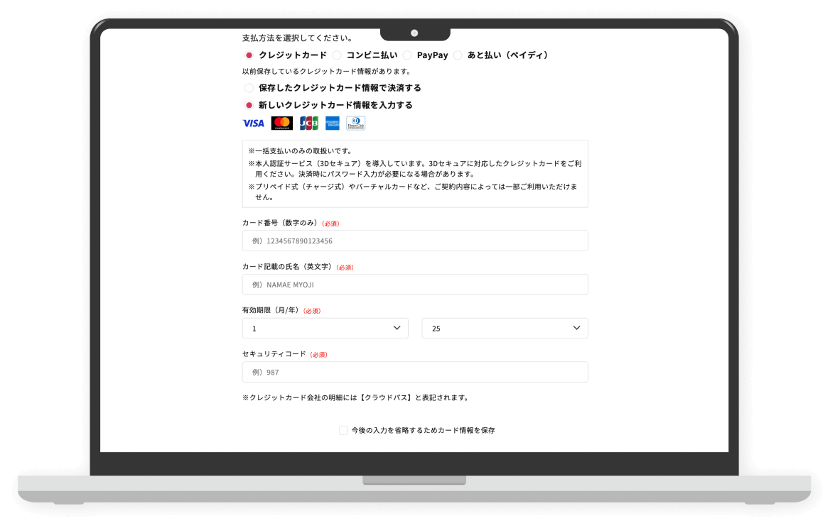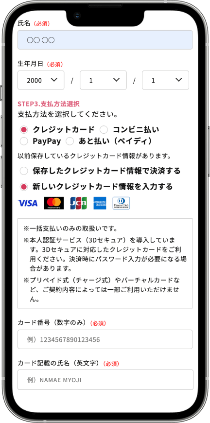 ※マイページにてクレジットカード情報を事前登録しておくことも可能です。