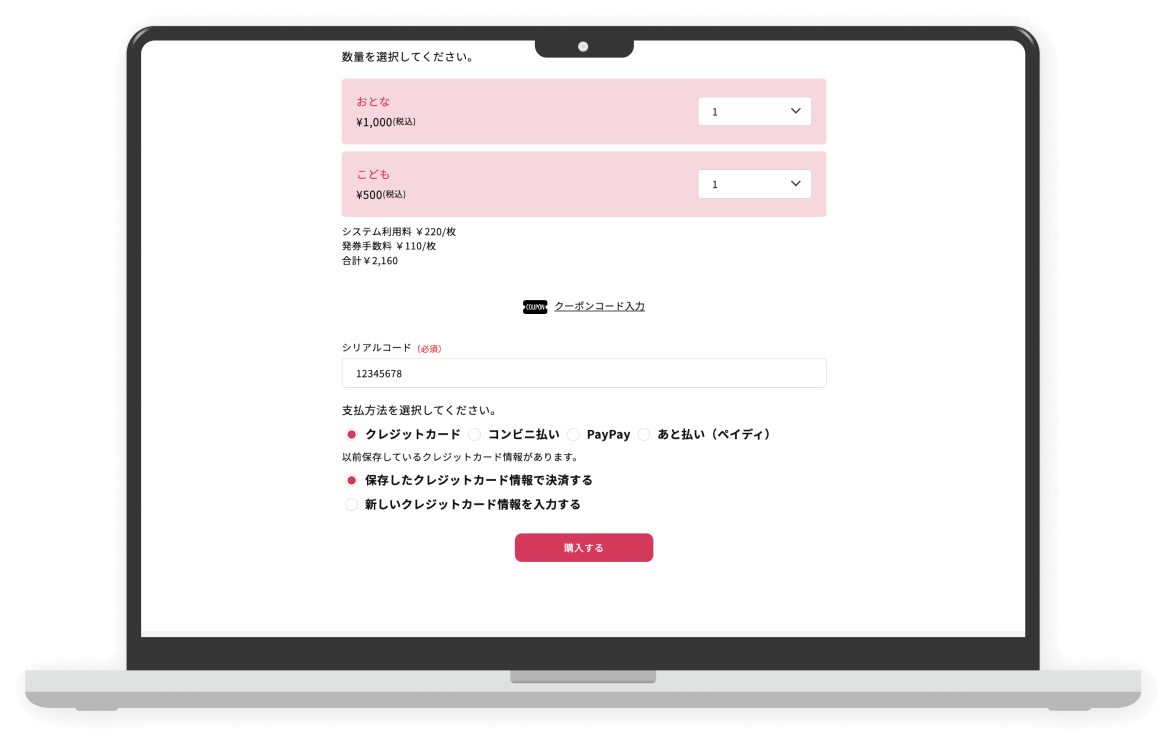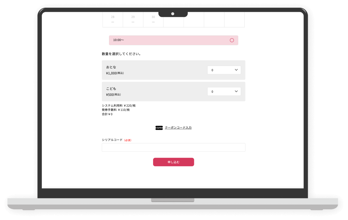 シリアルコード(ランダム数字、社員番号など)を入力して申し込み可能