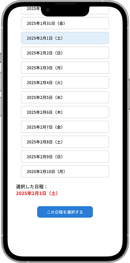座席図の中から希望の座席を選択します。空席・選択済み・選択不可の座席は色分けされて表示され、ひと目で判別できます。
