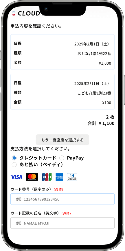 ※マイページにてクレジットカード情報を事前登録しておくことも可能です。