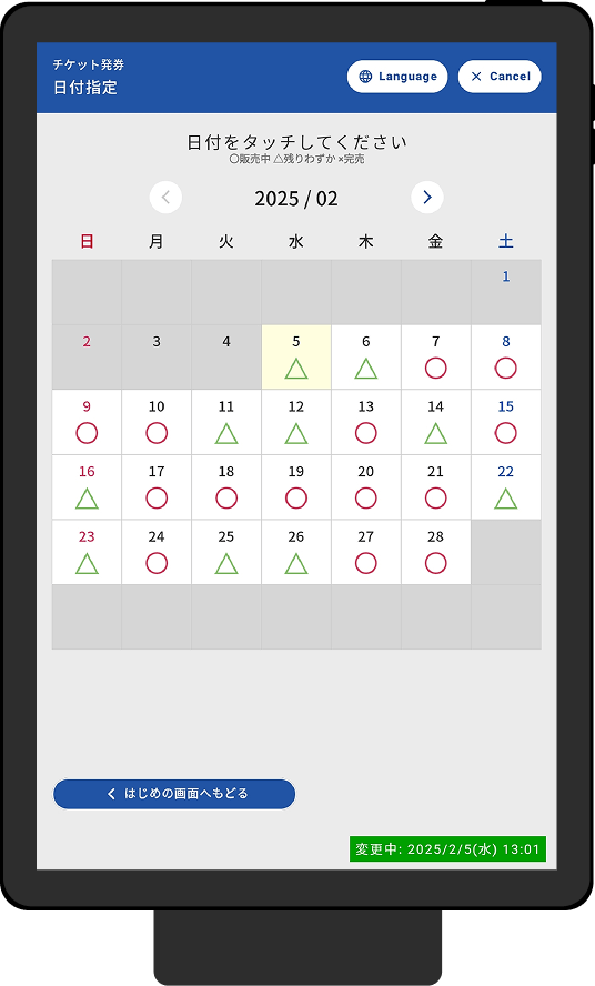 空席・選択済み・選択不可の座席は色分けされて表示され、ひと目で判別できます。