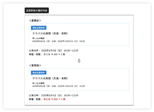 - 複数の申込ページを1つのURLにまとめて管理可能。販売日時に合わせた表示制御と、イベント概要や注意事項を掲載した専用ページを簡単に作成できます。