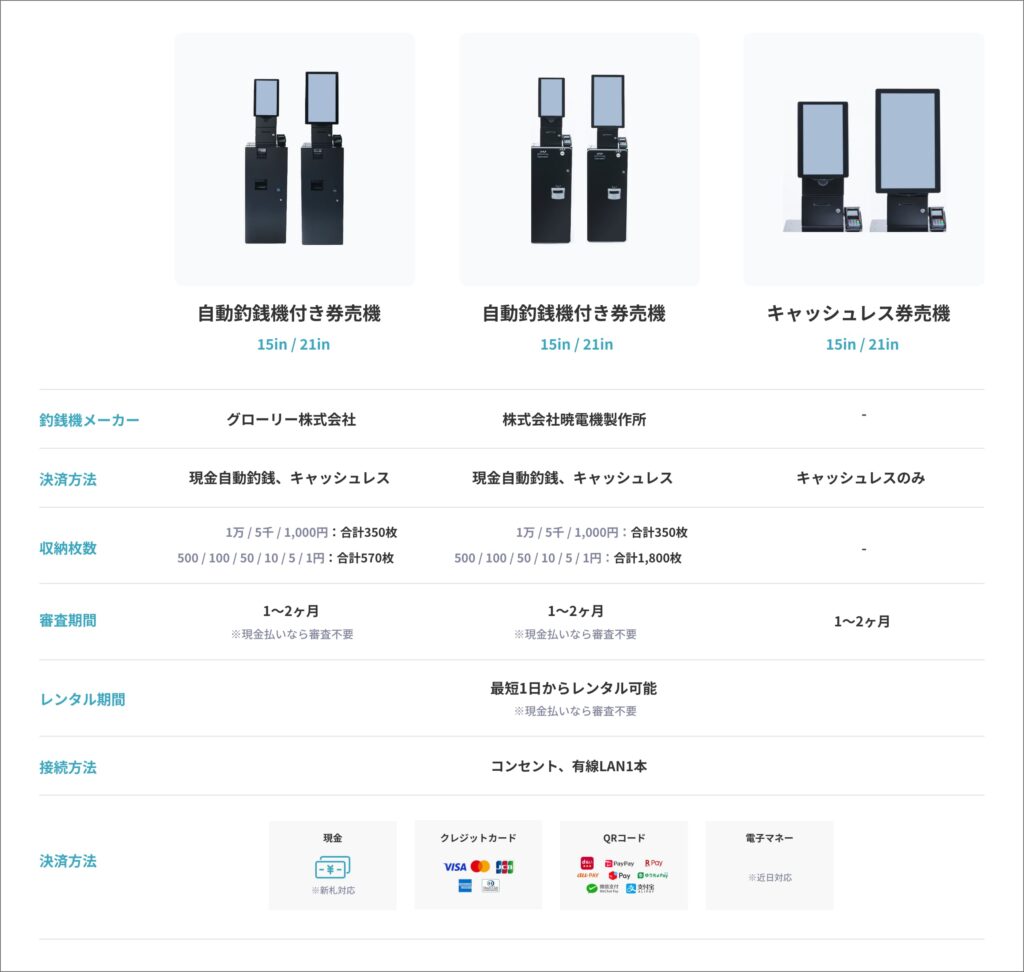 取り扱いタッチパネル券売機レンタル一覧
