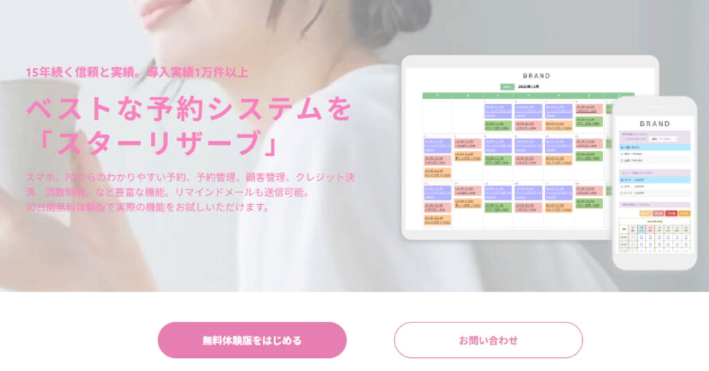 スターリザーブは、10,000件以上の導入実績があり、サロンやスクール向けの細やかな予約設定に強みを持つ予約ツールです。