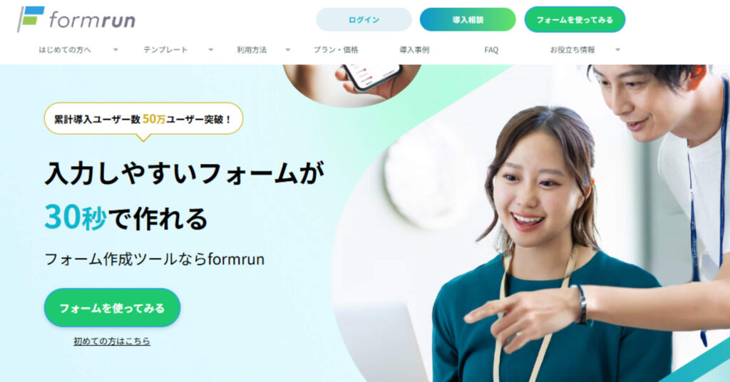 formrun(フォームラン)は、フォーム作成ツールです。最短30秒ほどで予約フォームを作成でき、顧客の回答データをカンバン方式で表示、ドラッグ&ドロップの直感的な操作で顧客のステータスを変更できます。姉妹サービスであるbookrunと連携させれば簡単に日程調整もおこなうことが可能です。