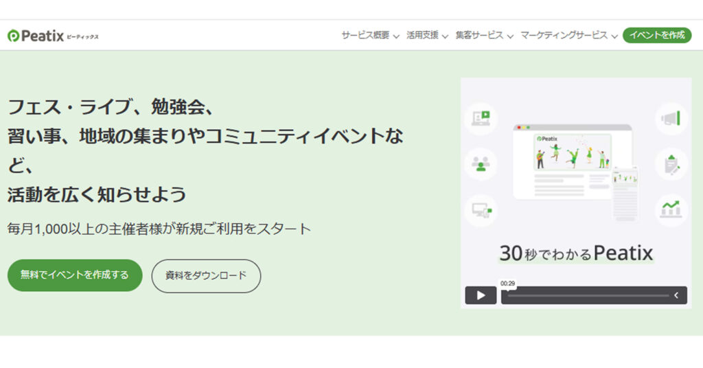 Peatix(ピーティックス)は、イベントの集客・告知に特化した予約システムです。