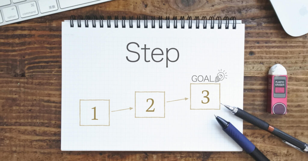 最初に情報を整理し、次にデザイン、最後に印刷という流れで進めることで、手戻りなくスムーズに完成させられます。
